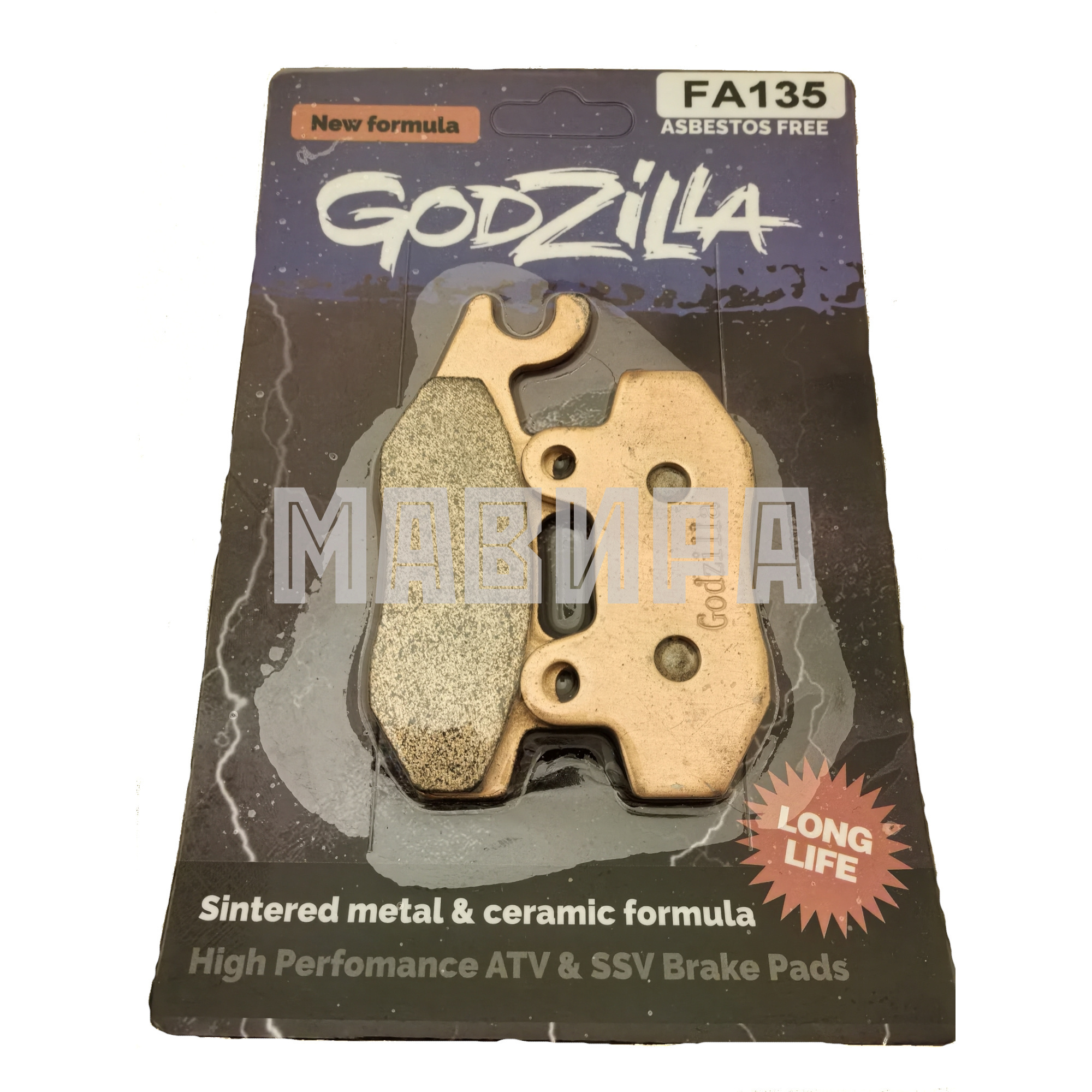 Фрикционный слой тормозных колодок изготовлен из спеченной метало керамической композиции, металлическая основа колодки защищена порошковым покрытием "золотого" цвета. В составе материала фрикционной накладки содержания медной крошки равно 70%, что значительно улучшает технические характеристики. Колодки Godzilla с феродо из металло керамики, исключительно подходят для эксплуатации в жестких условиях таких как грязь, песок, земля, болото и прочих агрессивных средах. В колодках от компании Godzilla идеально сбалансирован ресурс, эффективное торможение и доступная цена. Фрикционный материал колодки в сочетании с точной геометрией основы позволяет обеспечивать продолжительную службу всего тормозного узла.
