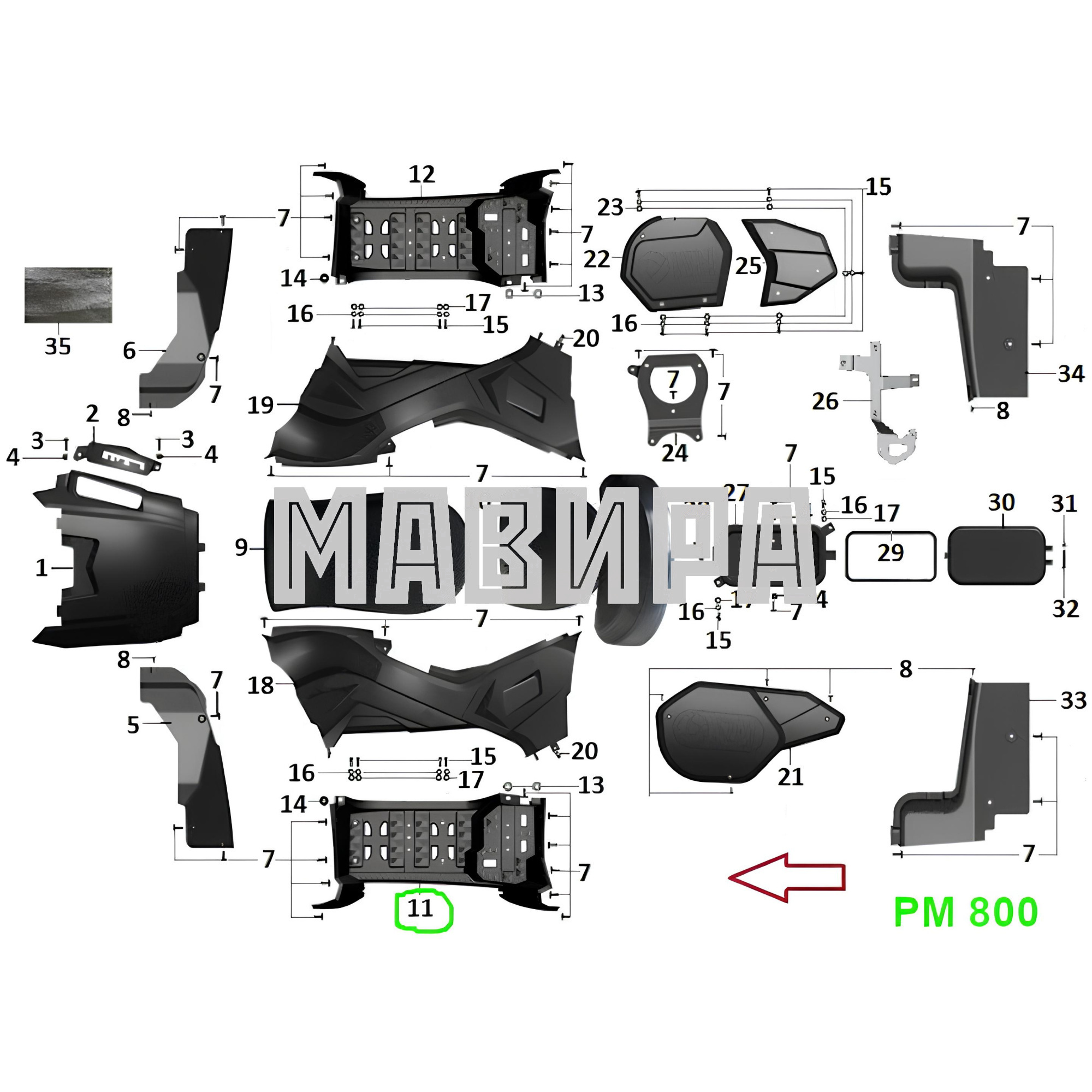 Подножка левая для квадроцикла РМ 800 RM производства Русская механика артикул R40700022