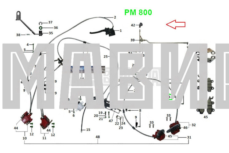 Шланг тормозной задний правый РМ 800 (700 мм)