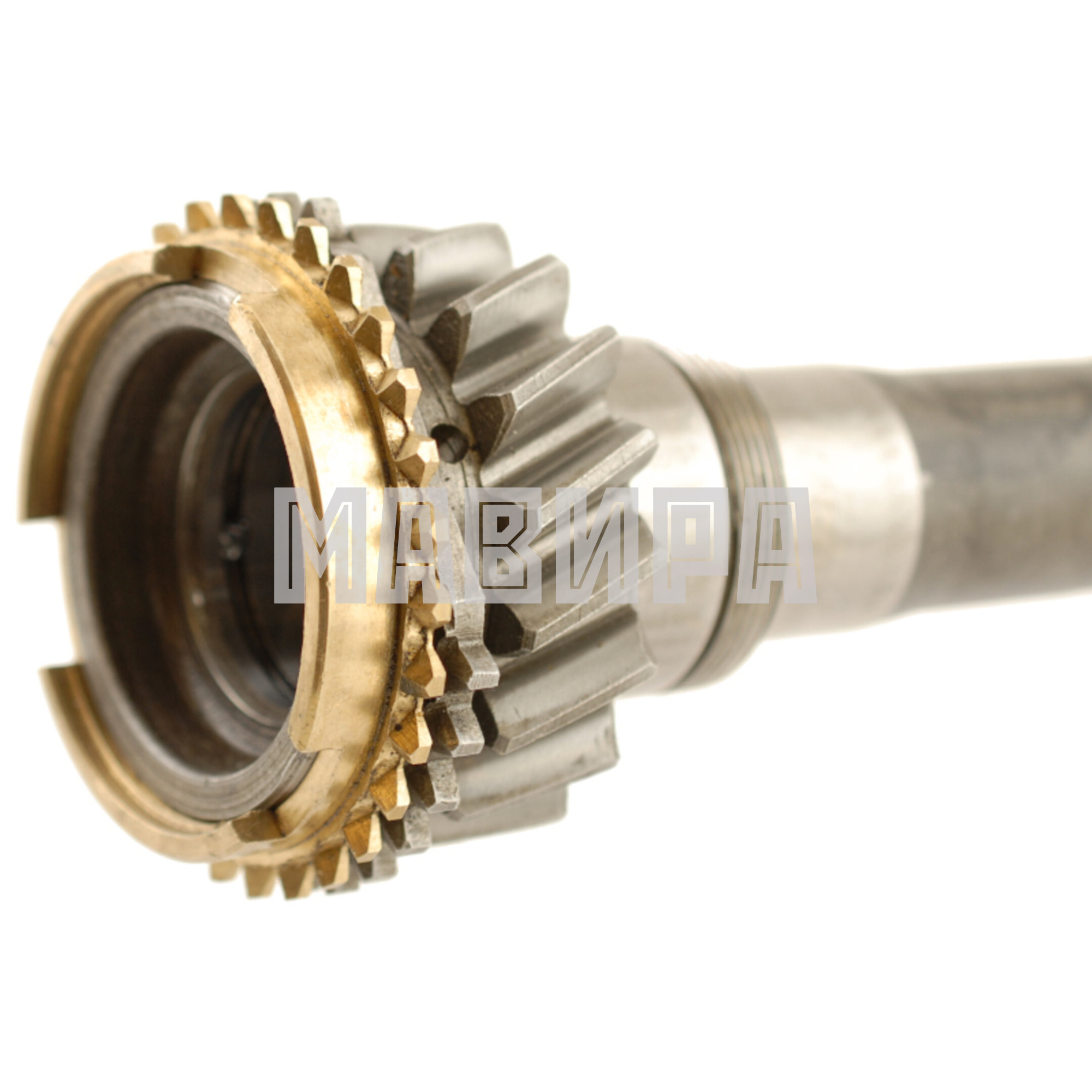 Вал первичный с блокирующим кольцом синхронизатора коробок передач устанавливаемых на грузовых автомобилях, автобусах и гусеничных вездеходах производимых во времена СССР для нужд народного хозяйства и вооруженных сил. Деталь произведена во времена СССР.